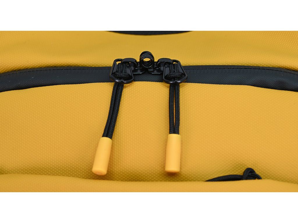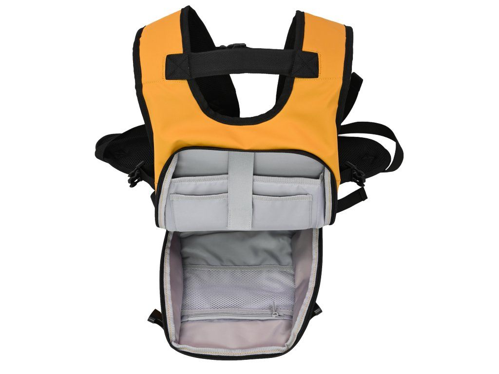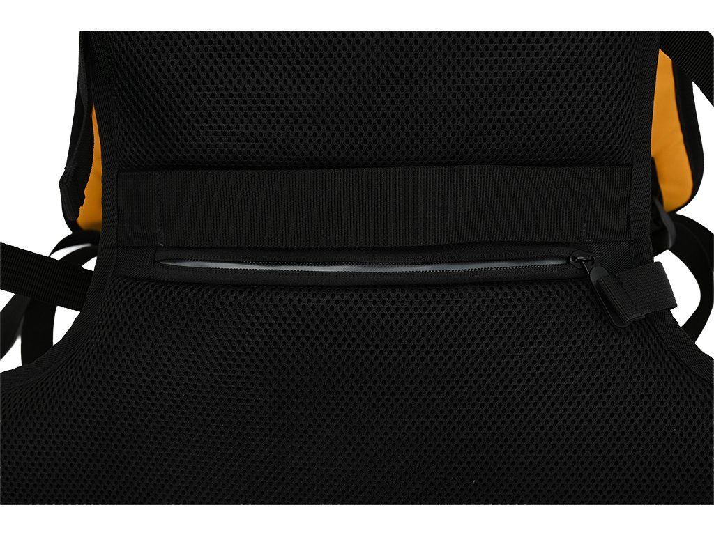 Na zadní straně najdeš skrytou bezpečnostní kapsu na zip pro cennosti a také popruh, díky kterému batoh snadno nasadíš na rukojeť kufru. Boční karabiny umožňují batoh stáhnout a přizpůsobit jeho objem podle potřeby.