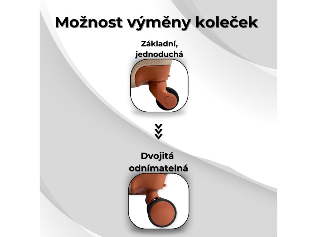 - 4 otočné odnímatelné kolečka, kufr je určen pro manipulaci na všech 4 kolečkách!