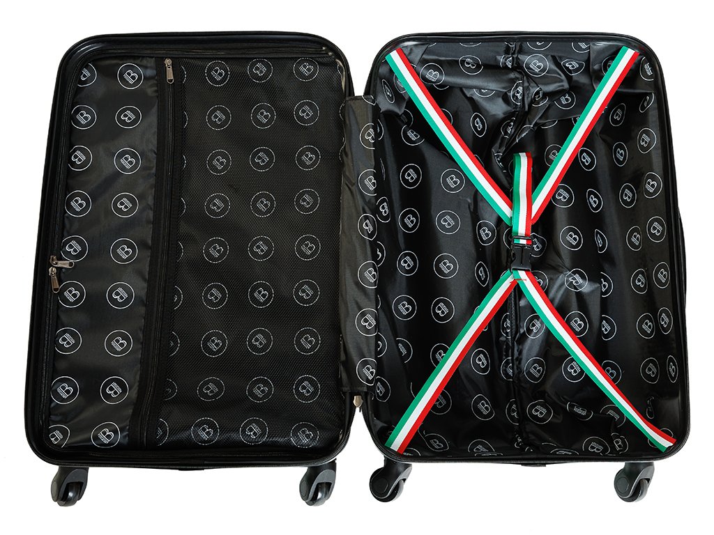 - uvnitř kufru stylová podšívka s logem BERTOO, síťovaná kapsa na zip a elastické popruhy pro upevnění oblečení a předmětů