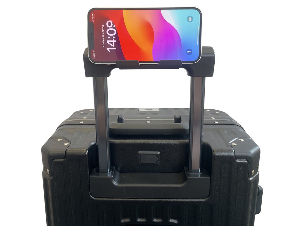 | #nejlepsi-vlastnosti: | Odolná skořepina ABS+PC v hliníkovém rámu|3 robustní TSA zámky|Přípojka USB a USB-C|Držák na nápoje|Boční nožky s háčkem na tašku|Přední logo s háčkem na tašku|Držák na telefon|Velký úložný prostor|Teleskopická rukojeť |