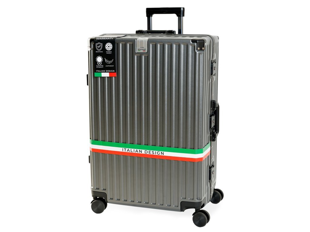 Představujeme vám prvotřídní cestovní kufr Bertoo Palermo, který kombinuje nejnovější technologie a stylový italsky design. Tento kufr je vyroben novou technologii z odolného ABS+PC materiálu, který zajišťuje maximální ochranu vašich věcí během cestování. Kolem obvodu kufru je navíc pevný hliníkový rám, zajištěný dvěmi robustními TSA zámky, které ještě více zvyšují odolnost kufru proti poškození, cizímu otevření, tím se z kufru stane nedobytný trezor. Díky spojení těchto materiálů je kufr robustní a odolný, ale přitom elegantní. Dvojité otočné kolečka dodávají kufru lehkou manipulaci a jízdu.