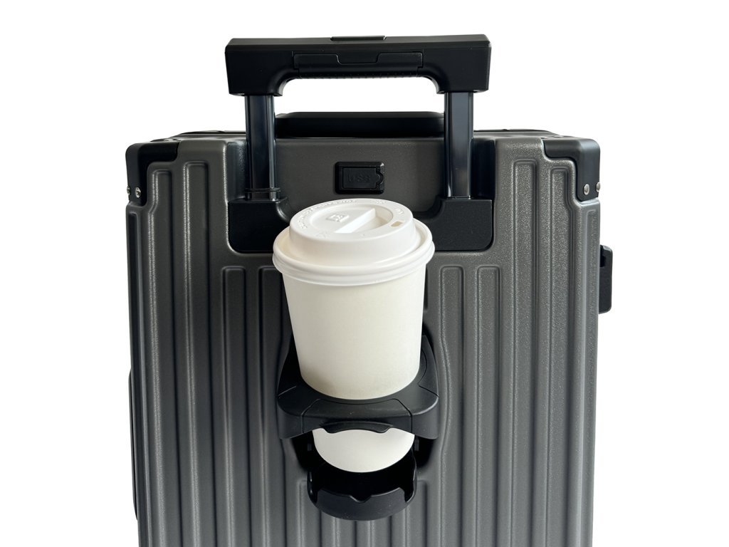 #nejlepsi-vlastnosti: | Odolná skořepina ABS+PC v hliníkovém rámu|3 robustní TSA zámky|Přípojka USB a USB-C|Držák na nápoje|Boční nožky s háčkem na tašku|Přední logo s háčkem na tašku|Držák na telefon|Velký úložný prostor|Teleskopická rukojeť |