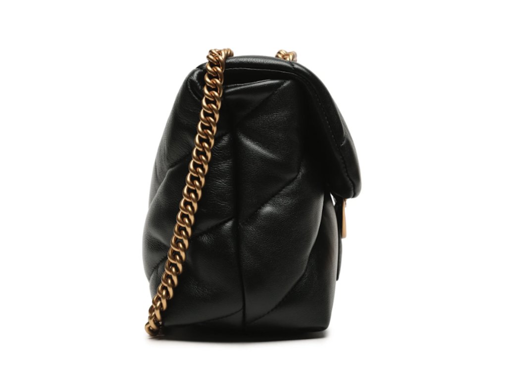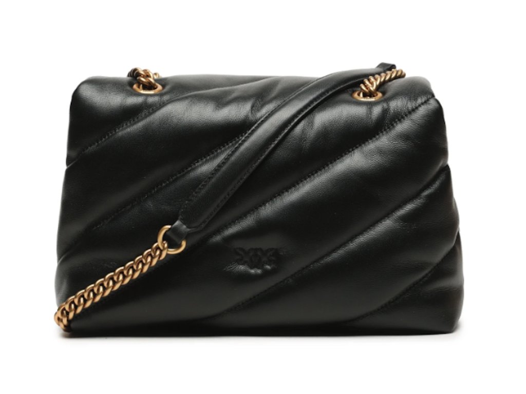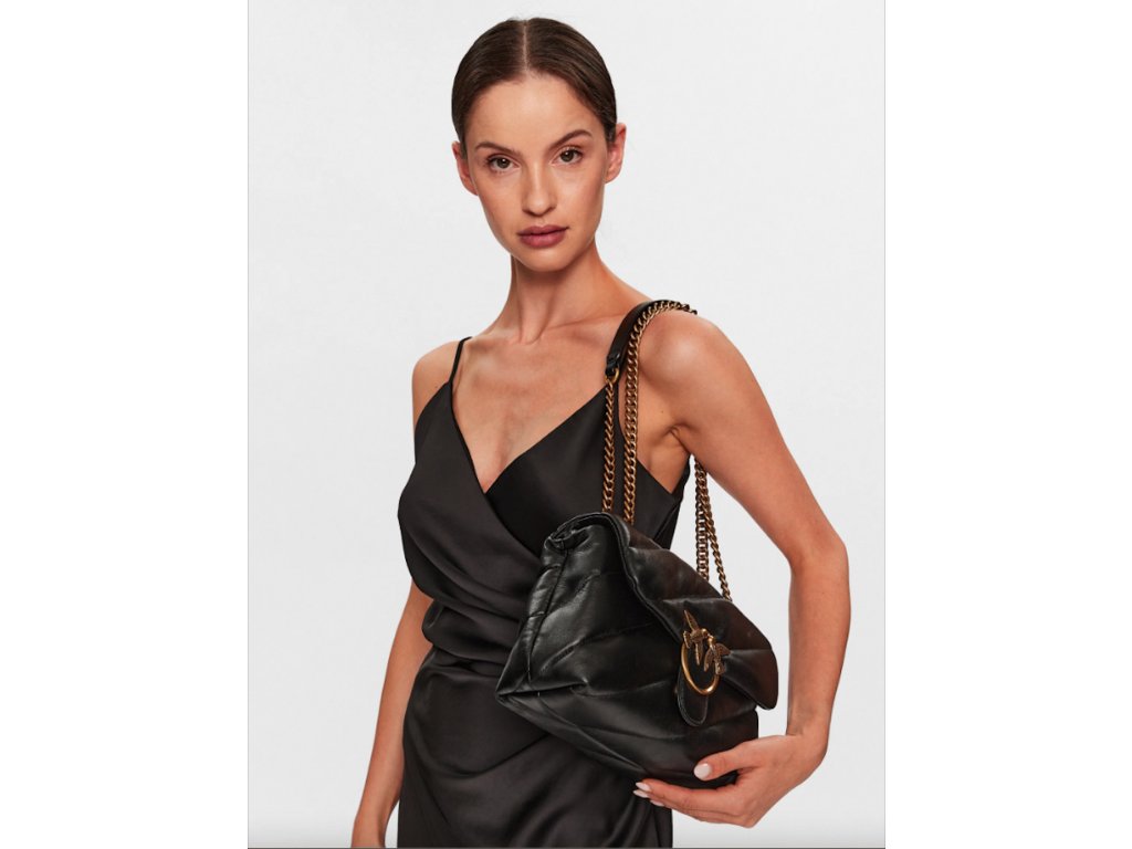 Luxusní kabelka černé barvy od oblíbené italské značky Pinko je z koženého materiálu zdobena ikonickým zlatým kovovým detailem v podobě dvou ptáčků a elegantním prošíváním. Uvnitř má kabelka 2 komory. Hlavní zapínání kabelky je na magnetický kovový druk. Součástí je řetízkový popruh. Kabelku tak můžete nosit jak na rameni tak jako crossbody. Ideální doplněk pro každý stylový outfit, který kombinuje eleganci a praktičnost.