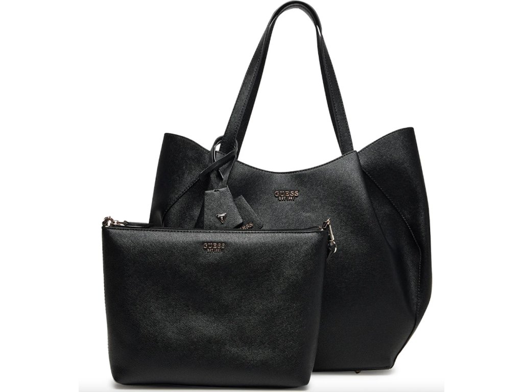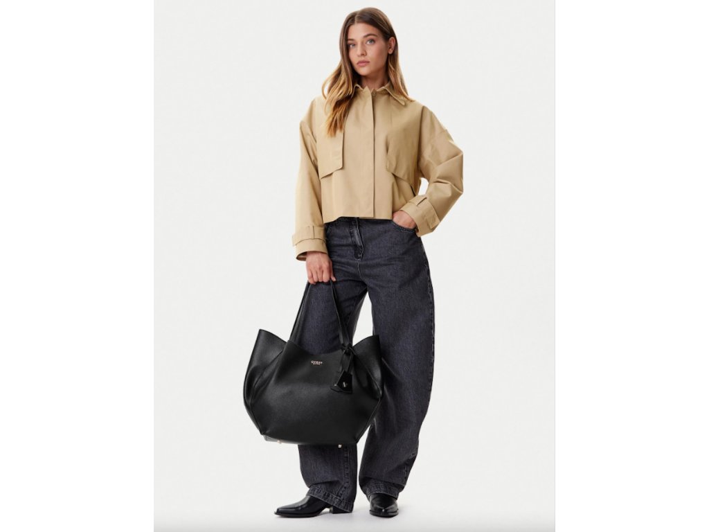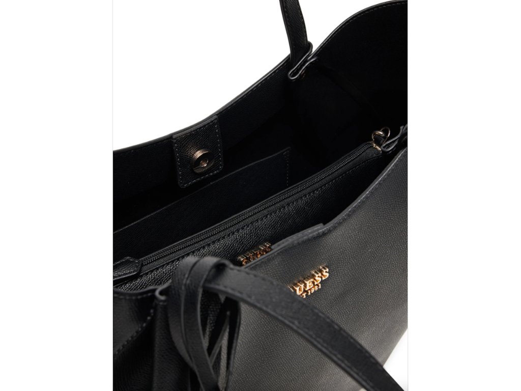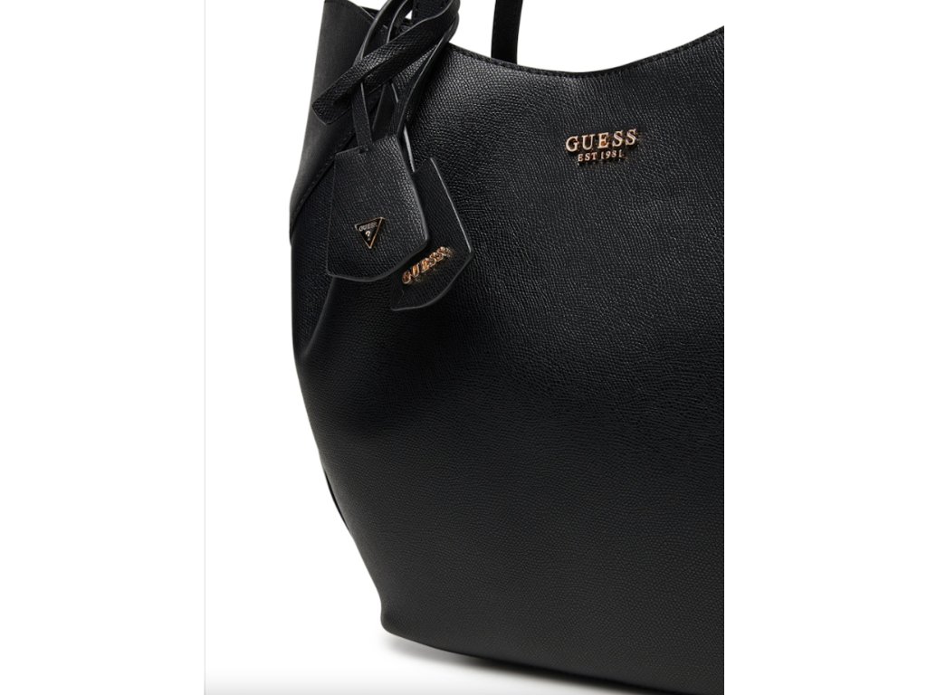 Dámská kabelka Guess 2v1 je v černé barvě s logem značky Guess. Uvnitř kabelky se nachází prostorný hlavní prostor vhodný i pro formát A4. Součástí kabelky je malé psaníčko, které lze využít na kosmetiku či jiné nezbytnosti. Zapínán kabelky je na magnetický druk. Stylová volba pro každodenní nošení. Součástí kabelky je prachový pytlík.