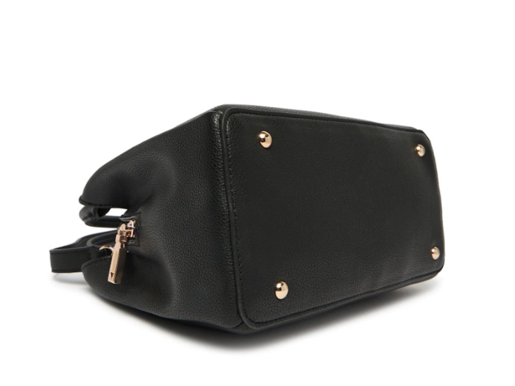 Malá dámská kabelka Guess v černé barvě se zlatými prvky. Přední stranu zdobí logo GUESS ve zlaté barvě. Kabelka má tři komory. Prostřední komora na zip, kde se nachází kapsička na zip na cennosti. Postranní kapsy uzavíratelné na magnetický druk. Součásti kabelky je i odnímatelný popruh, který umožňuje pohodlné nošení různými způsoby. Kabelku tak můžete nosit nejen v ruce ale i jako crossbody. Ochranné nožičky na spodní straně kabelky jako ochrana před zašpiněním. Stylová volba pro každodenní nošení. Součástí kabelky je prachový pytlík.