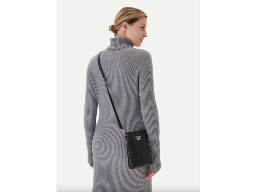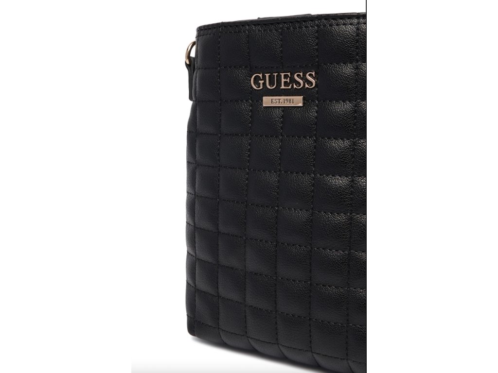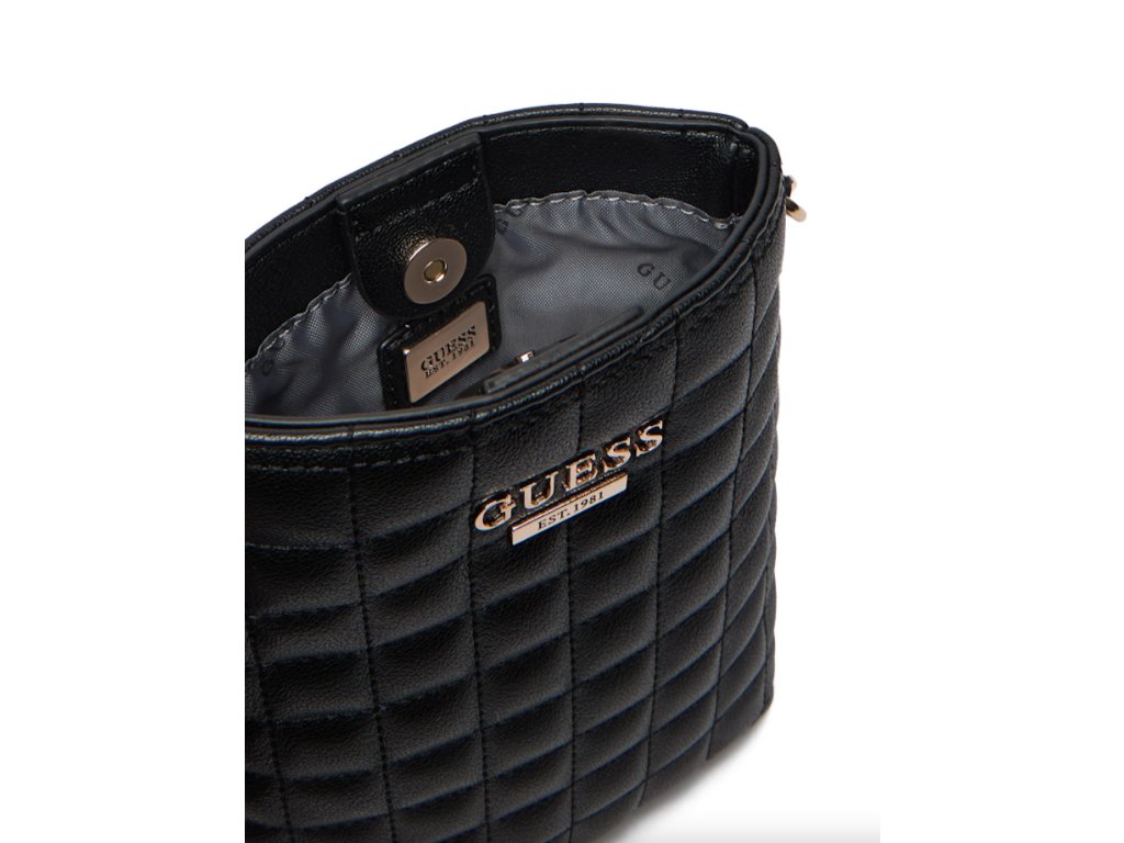 Elegantní malá prošíváná crossbody kabelka značky GUESS v černé barvě. Kabelka je zdobena zlatými detaily - kovovým logem značky Guess. Celá kabelka se zapíná pomocí magnetického druku. Součástí kabelky je odnímatelný popruh. Tato kabelka je stylovým a funkčním doplňkem pro každodenní nošení.