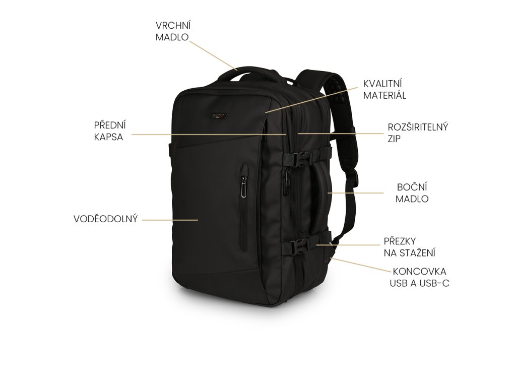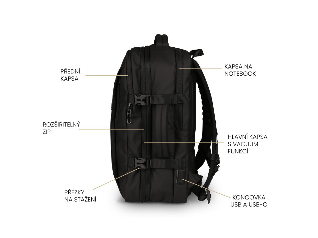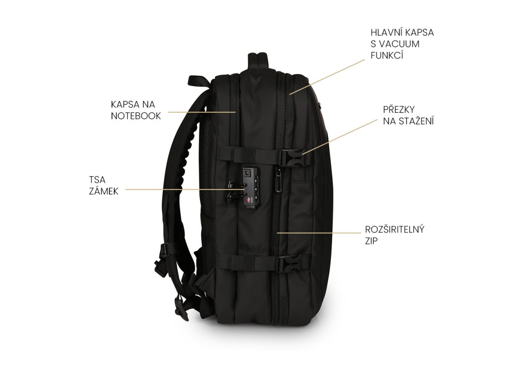 #top-vlastnosti: | Vacuum funkce|Kapsa na<br> notebook|Rozšiřitelný<br> zip|Kabinový<br> rozměr |