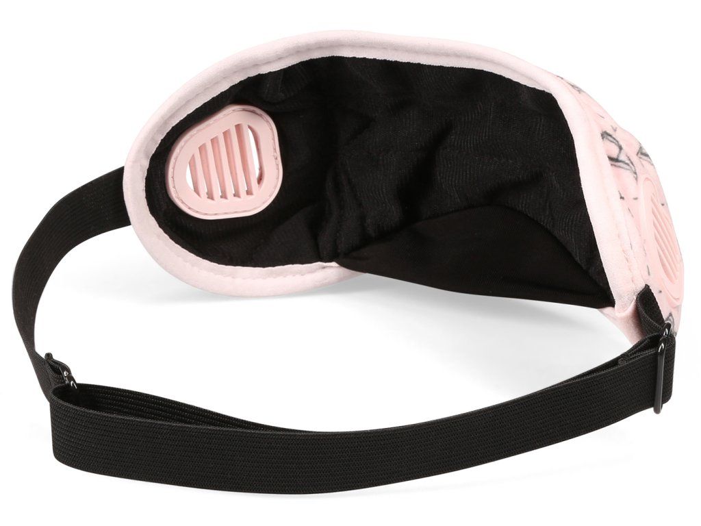 Pro lepší prodyšnost jsou v oblasti spánků umístěny ventilační prvky v podobě gumové mřížky, které zvyšují pohodlí i při delším používání. Maska je vybavena nastavitelným gumovým popruhem kolem hlavy, díky kterému se snadno přizpůsobí a dobře drží na svém místě.