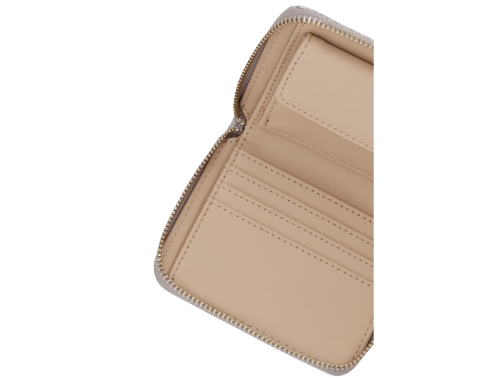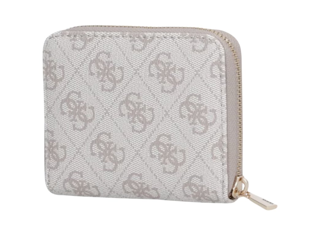 Buďte organizovaní a stylový s malou peněženkou značky Guess. Dámská peněženka v praktické velikosti značky Guess béžové barvy se vzorem značky loga Guess. Peněženka se zapíná na zip a uvnitř je menší kapsa na drobné mince se zapínáním na druk. Součástí jsou i 4 přihrádky na karty. Kování je ve zlaté barvě, součástí je originální krabička.